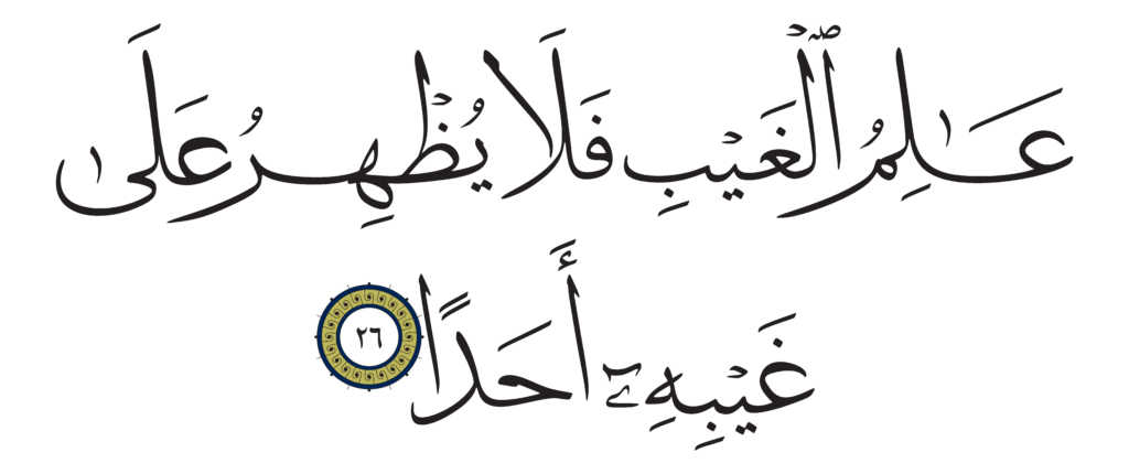 | الجن ٧٢: ٢٦ | مصحف الفتح النسخ القرآن الكريم | ![]() |