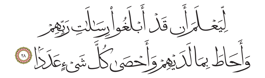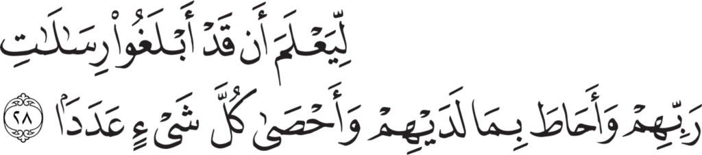 | الجن ٧٢: ٢٨ | النسخ القرآن الكريم مصحف الفتح | ![]() |