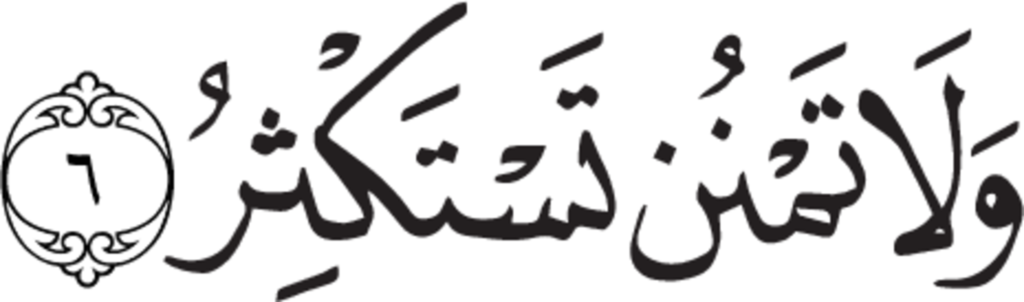 | المدثر ٧٤: ٦ | النسخ القرآن الكريم مصحف الفتح | ![]() |
