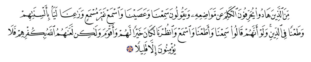 | النساء ٤: ٤٦ | القرآن الكريم مصحف الفتح النسخ | ![]() |