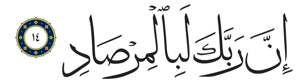| الفجر ٨٩: ١٤ | القرآن الكريم مصحف الفتح النسخ | ![]() |