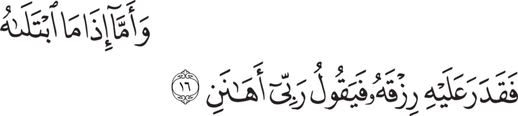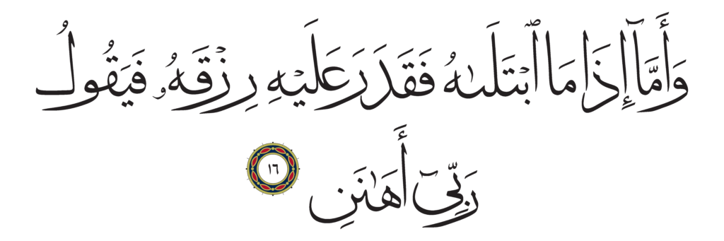 | الفجر ٨٩: ١٦ | النسخ القرآن الكريم مصحف الفتح | ![]() |