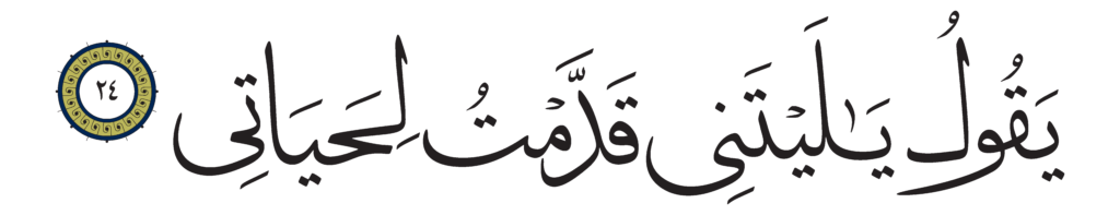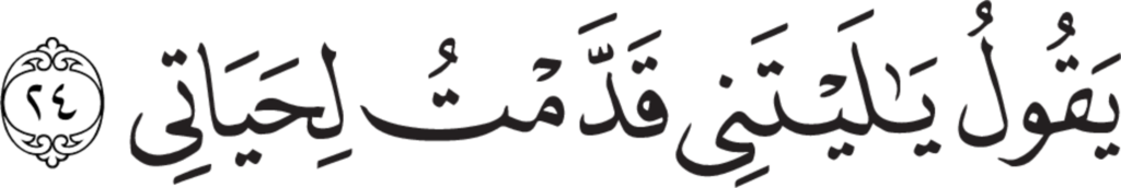 | الفجر ٨٩: ٢٤ | النسخ القرآن الكريم مصحف الفتح | ![]() |