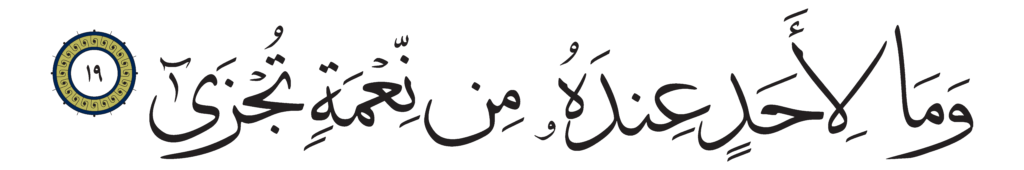 | الليل ٩٢: ١٩ | النسخ القرآن الكريم مصحف الفتح | ![]() |