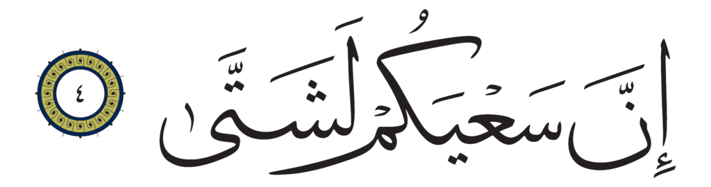 | الليل ٩٢: ٤ | القرآن الكريم مصحف الفتح النسخ | ![]() |