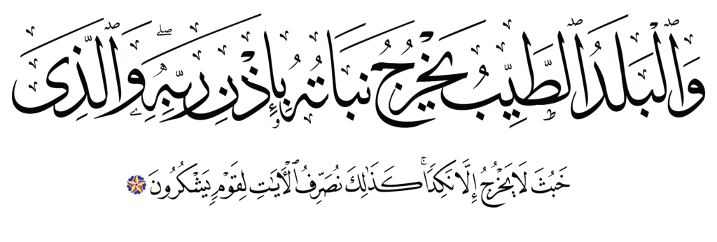 | الأعراف 7، 58 | القرآن الكريم مصحف جلالة الملكة علياء | ![]() |