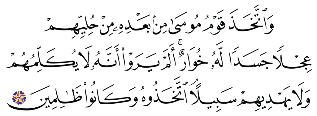 | الأعراف 7، 148 | القرآن الكريم مصحف جلالة الملكة علياء | ![]() |