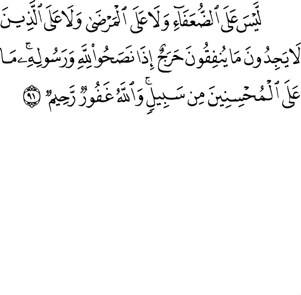 | التوبة ٩: ٩١ | النسخ القرآن الكريم مصحف الفتح | ![]() |