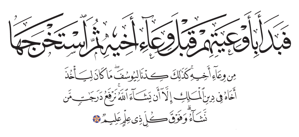 | يوسف ١٢: ٧٦ | النسخ القرآن الكريم مصحف الفتح | ![]() |