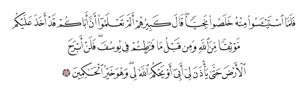 | يوسف ١٢: ٨٠ | النسخ القرآن الكريم مصحف الفتح | ![]() |