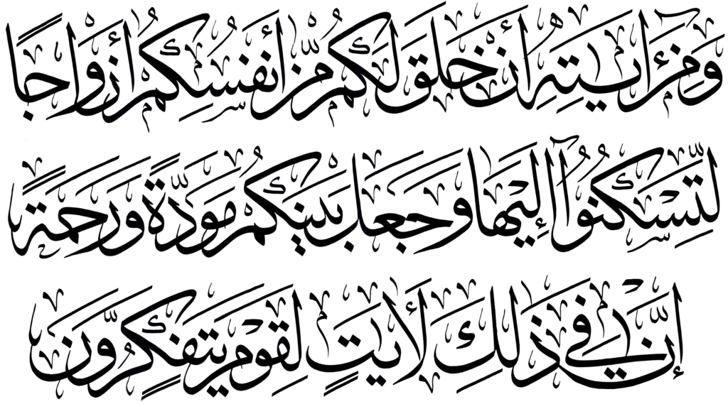 | الروم 30, 21 | حسن كنعان / كلية الفنون والعمارة الإسلامية الثلث القرآن الكريم | ![]() |